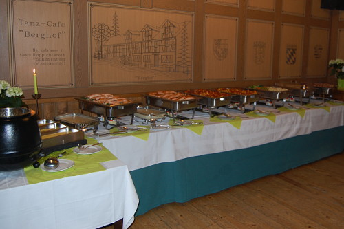Gerne beraten wir Sie bei der Auswahl Ihrer Speisen, Getränke, Dekoration, Musik und allem, was zu Ihrem „Event“ dazugehört. Leistungsstarke Partner sind an unserer Seite! Selbstverständlich können Sie unseren Saal auch ohne Leistungen buchen, fragen Sie uns einfach. Das Team des „Tanzcafé Berghof“ freut sich auf Sie als Gast!
